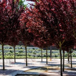 Løvfældende stor busk / lille træ med mørkerøde blade. Er kraftigt voksende med bredkrone. Bliver 4 – 7 m høj og 2 – 4 m bred.