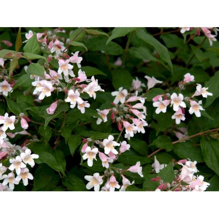 Rig blomstring i juni måned. Ældre buske kan stå ganske dækket af dunede rosa, klokkeformede blomster. Vægten af blomsterne tynger de unge grene ned i yndefulde buer.