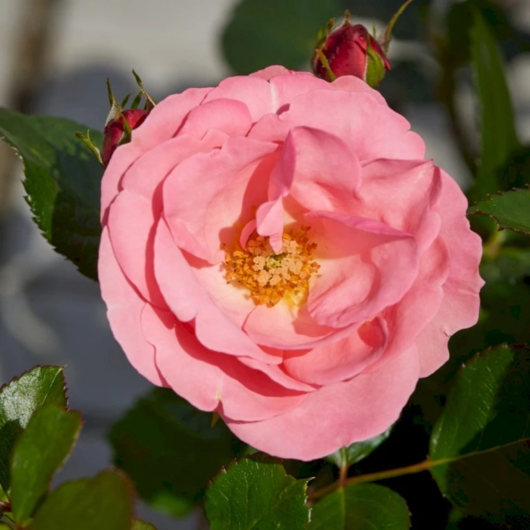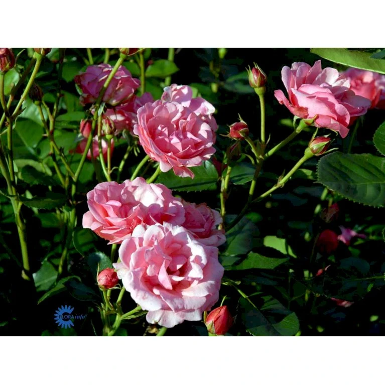 Rosa til ferskenrosa. Middelstor halvfyldt blomst med let duft. 10-20 kronblade. 7-9 cm i diameter.