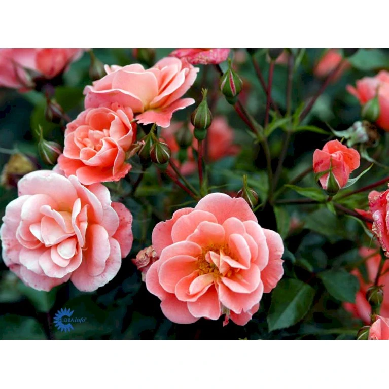 Laksefarvet til koralrosa. Middelstor og halvfyldt blomst med let duft. 10-25 kronblade. 7-9 cm i diameter.
