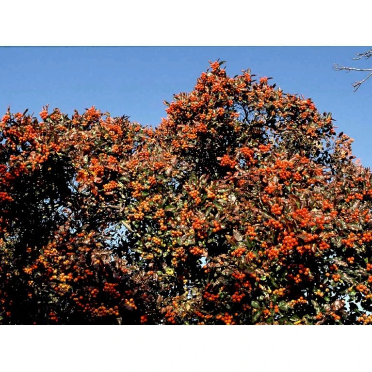 I maj-juni ses de hvide, duftende blomster i halvskærme, senere ret store orangerøde frugter, som er spiselige, men uden megen smag – de er dog meget populære hos fugle.