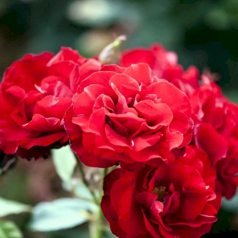 Ren rød. Middelstor halvfyldt blomst med let vildroseduft. 10-25 kronblade. 7-9 cm i diameter.