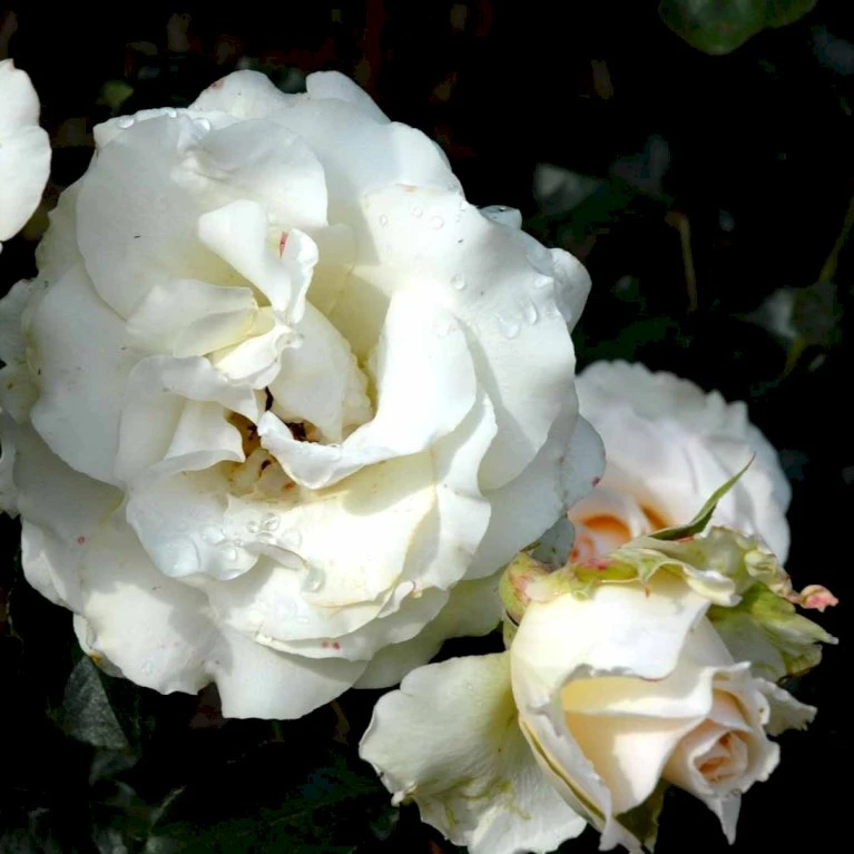 Sart gule knopper åbnes til cremehvide blomster. Helt udsprungne blomster er hvide med en cremehvid til sart gul midte. Meget store, velformet, fyldte blomster med en kraftig og behagelig duft. 25-40 kronblade. Op til 15 cm i diameter.