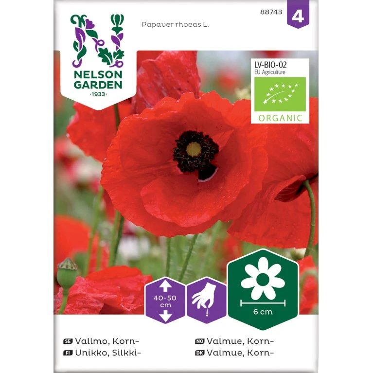 Frøposen indeholder økologiske kornvalmuefrø.
