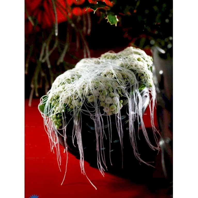 Små, uanselige hvide blomster med let og sød duft. Hanblomster og hunblomster sidder oftest på forskellige planter.