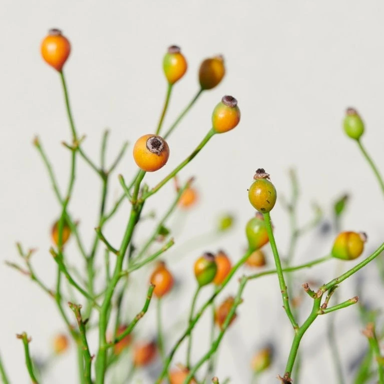 Blomster i juni-november. Sammen med sidste hold blomst ses talrige små røde hyben, som senere ædes af fugle.