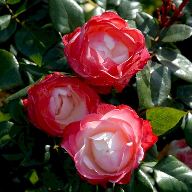 Velforgrenet for gruppen. Opret vækstform med lange stilke, roserne sidder enkeltvis eller få stykker sammen.