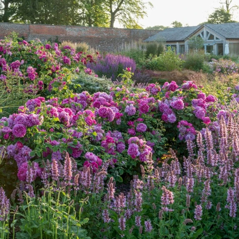 Lave Austinroser plantes bedst gruppevis i rosenbede med en planteafstand af 40 cm. Moderat beskæring anbefales.