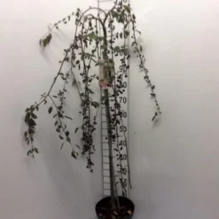 Lille træ med hængende vækst der bliver 3 m høj. Bladene starter med at være røde, hvorefter de skifter over til mørkegrønne.