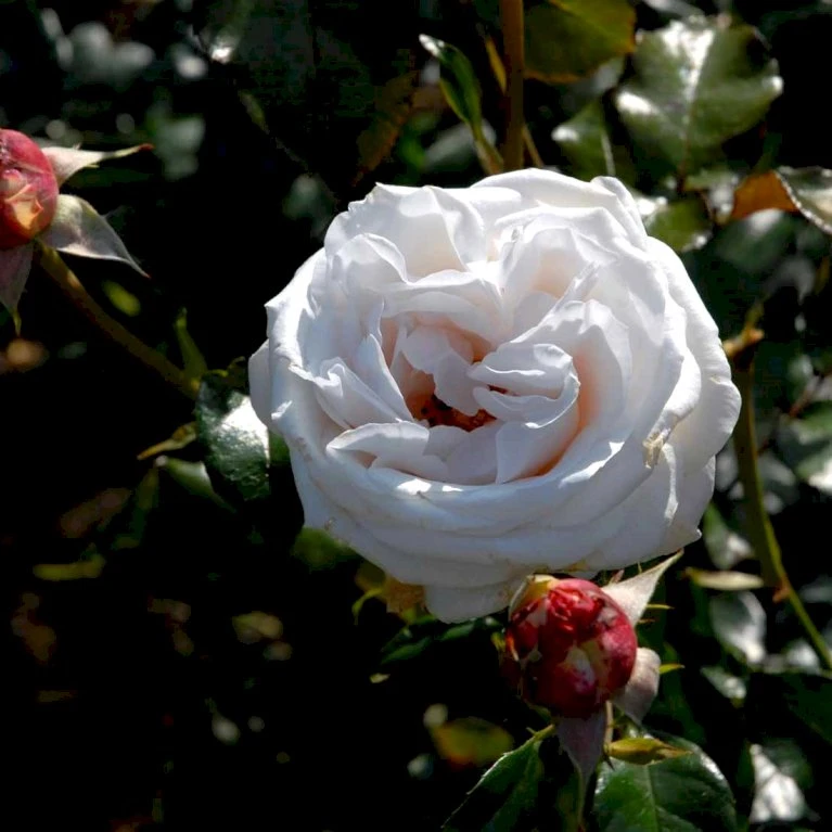 Porcelænsagtigt rosa, senere hvide. Stor og velformet, godt fyldt blomst. 20- 40 kronblade. Op til 12 cm i diameter.