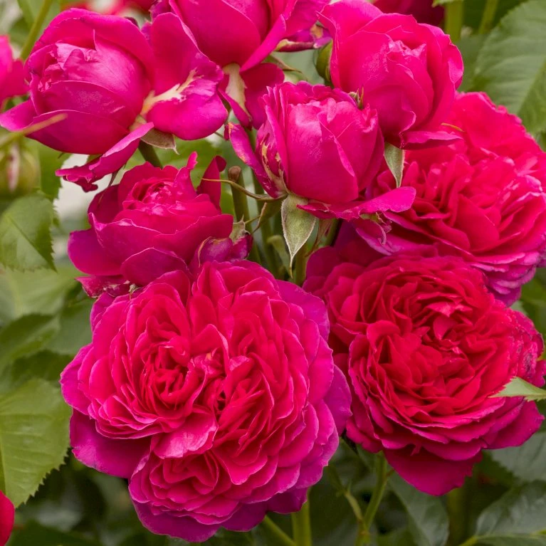 Store, velformede, stærkt fyldte blomster med en kraftig og dejlig gammeldags rosenduft med frugtagtige noter. 40+ kronblade. 8-10 cm i diameter.