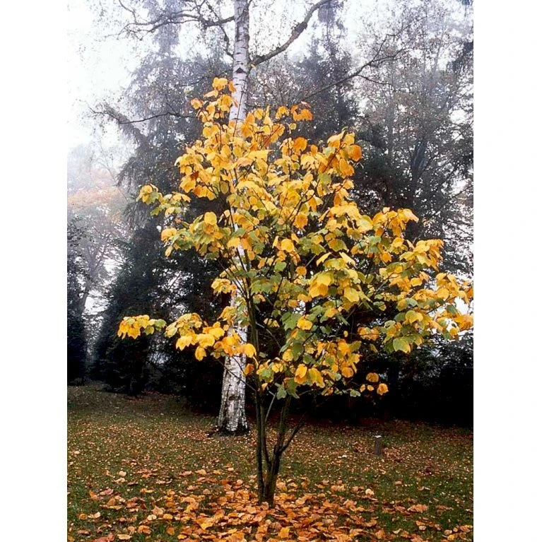 Flerstammet, træagtig busk, eller lille træ med kort stamme og som fritstående med bred krone. Bliver mellem 6 – 8 m høj og 3 – 6 m bred. Bladene er 3-lappede, mørkegrønne. Høstfarverne er lysende lysegule.