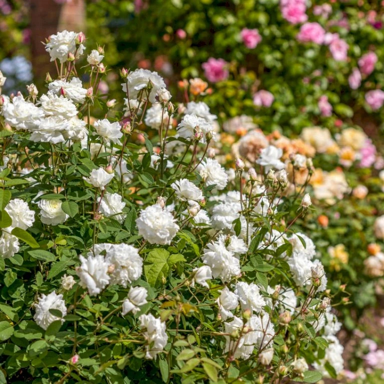 Lave Austinroser plantes bedst gruppevis i rosenbede med en planteafstand af 40 cm. Moderat beskæring anbefales.